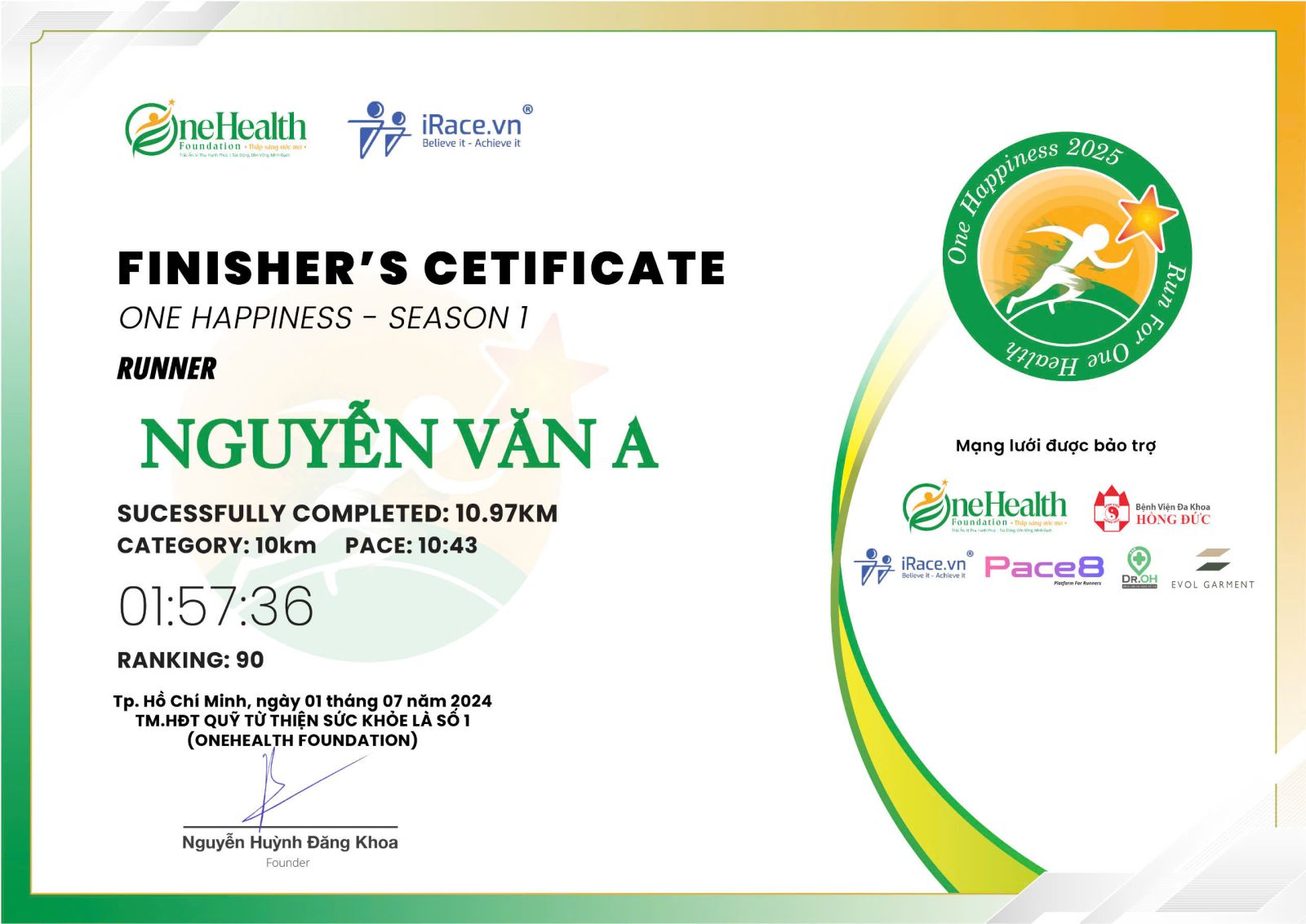Giấy chứng nhận giải chạy season 1